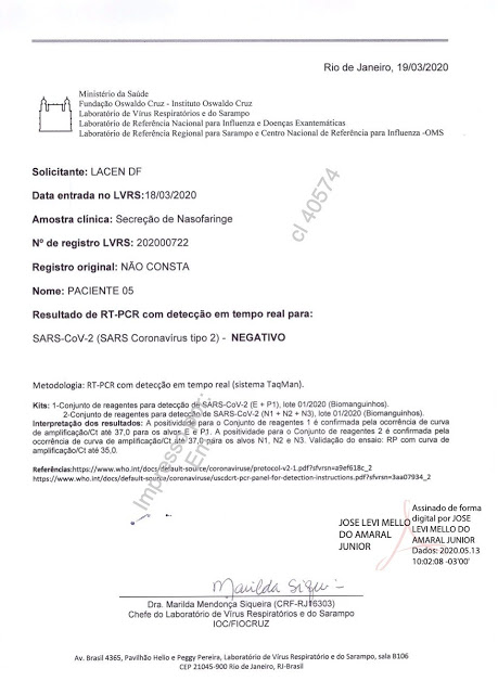 Bolsonaro informou que realizou o teste para covid-19 duas vezes, ambas em março, e os resultados deram negativos. Entre 7 e 10 de março, o presidente Bolsonaro esteve em viagem oficial aos Estados Unidos e 23 pessoas de sua comitiva contraíram o coronavírus.