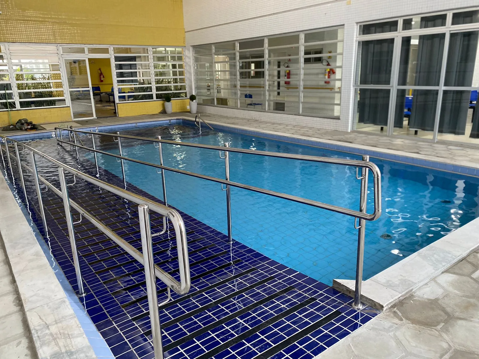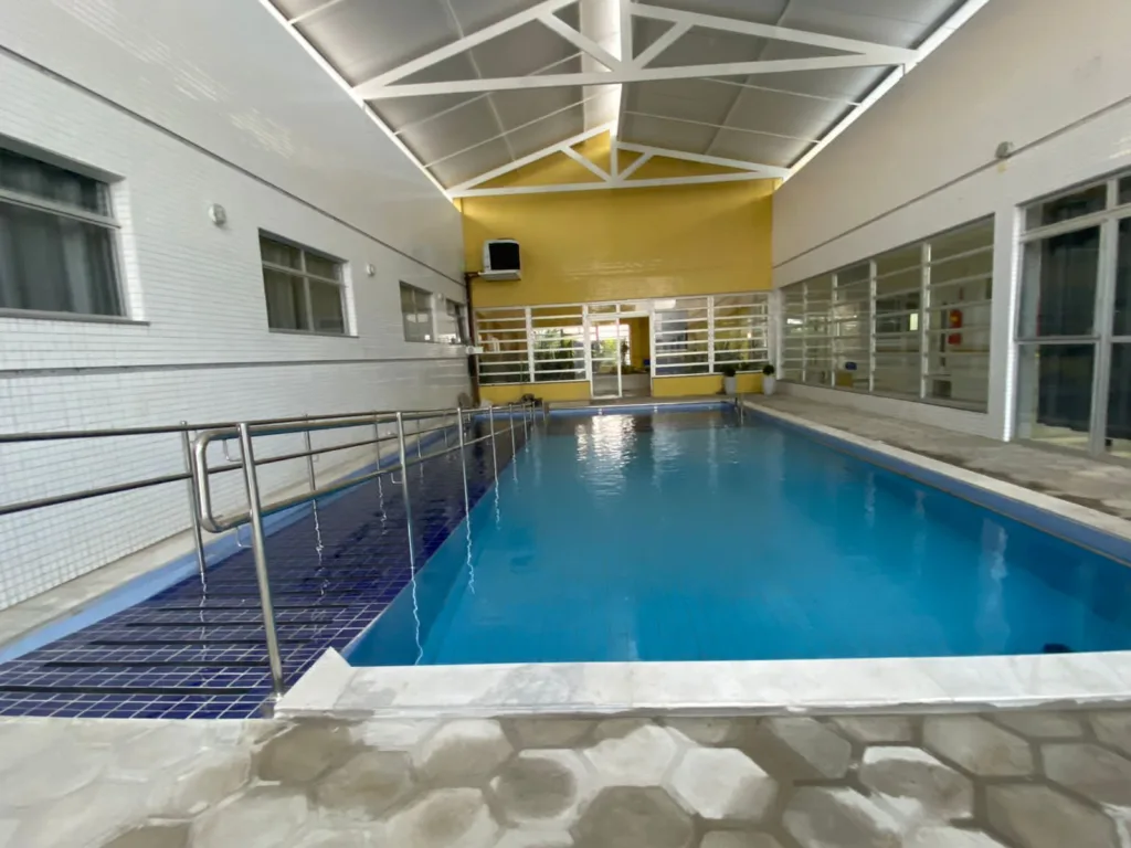A piscina tem 10m de comprimento por 6m de largura e acessibilidade para os pacientes. O investimento foi de R$ 239.539,00.