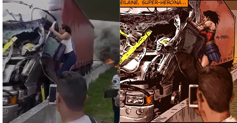 Como forma de homenagem à Leiliane por sua coragem, o artista Angelo France recriou o momento usando a heroína Mulher Maravilha. “Uma mulher forte, de coragem, que arriscava sua vida enquanto os homens a sua volta apenas se importavam em filmar ao invés de ajudar. Parabéns Leilaine!! Verdadeira Heroína!!! ”, postou o artista.