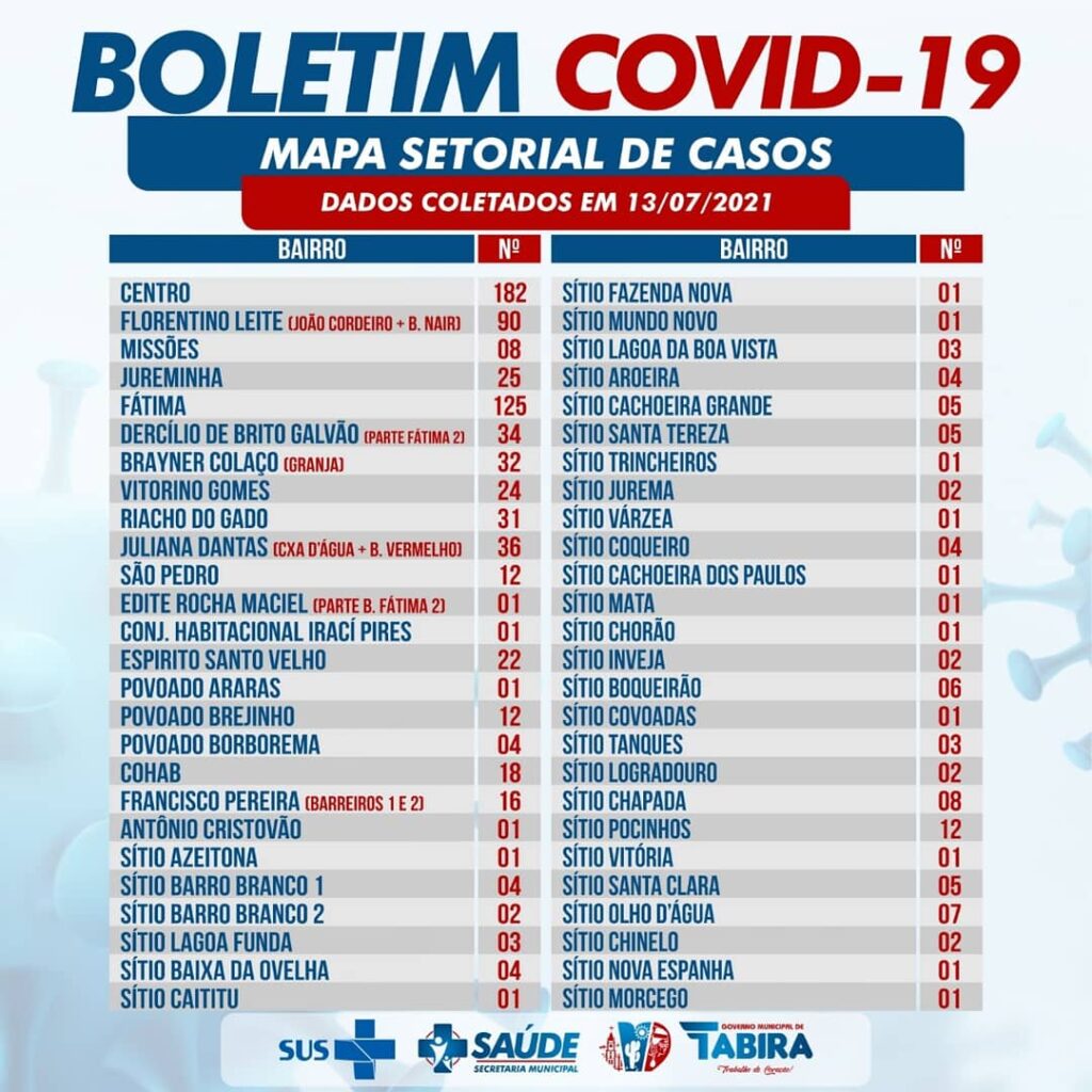 Tabira registra 07 novos casos para a covid-19, confira casos por localidade