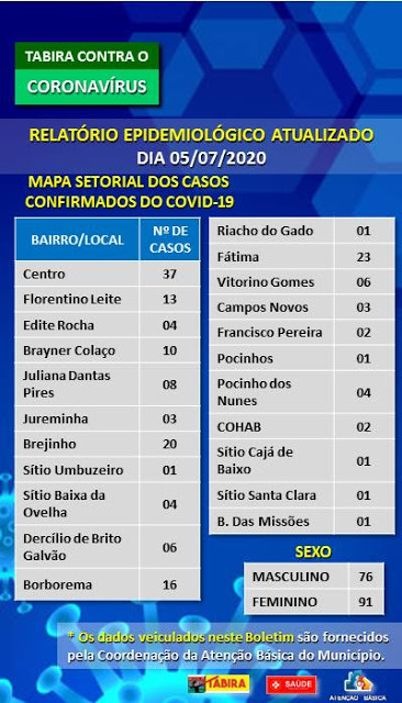 Segue o Relatório Epidemiológico atualizado, devidamente retificado e de acordo com a nomenclatura OFICIAL dos bairros do município de Tabira.