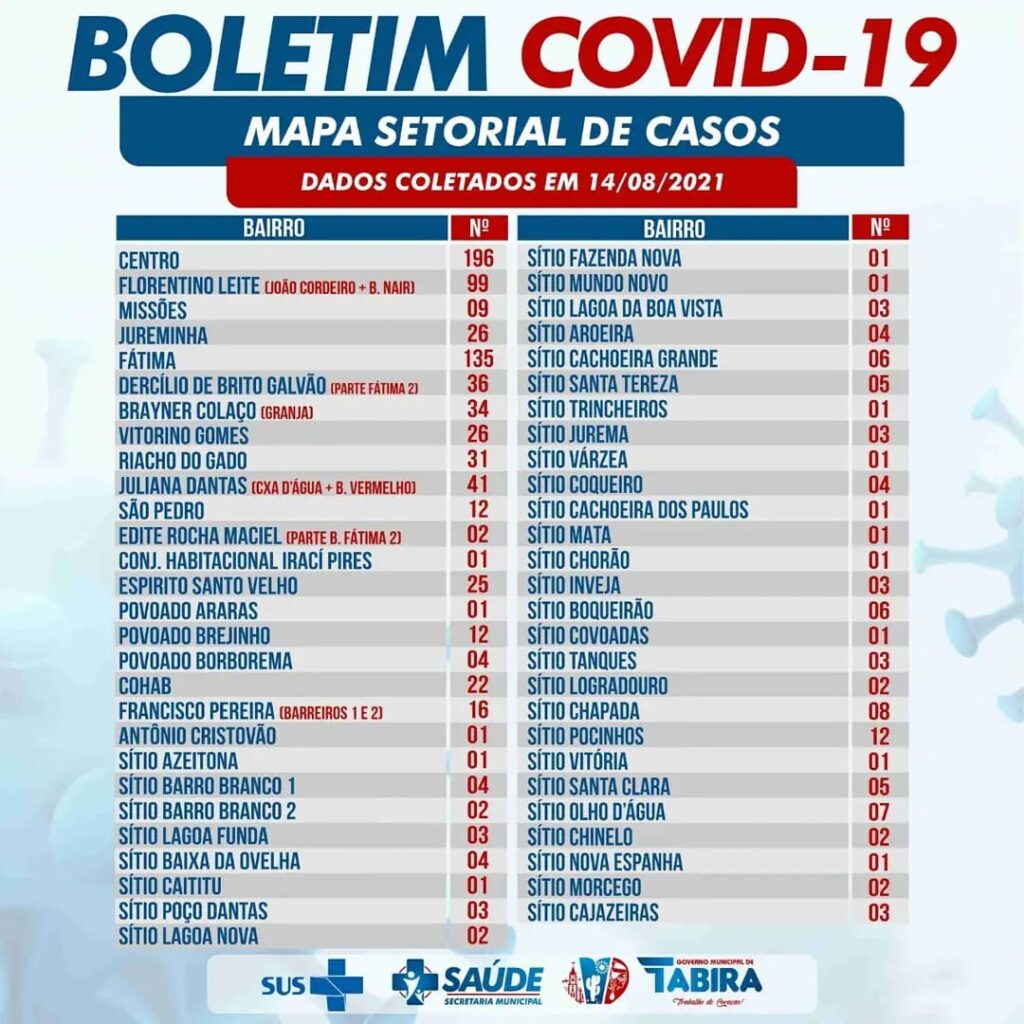 Tabira registra um novo caso da covid-19, confira casos por localidade