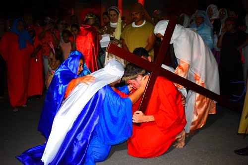 A secretaria de Desenvolvimento Social realizou a encenação da Via Sacra, em parceria com o Serviço de Convivência e Fortalecimento de Vínculos e os Programas Sociais. O momento de fé e reflexão aconteceu na Rua Rosa Xavier, na noite desta quarta-feira, 17.