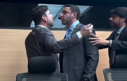 Com os ânimos exaltados, foi necessária a intervenção do vereador Gilson Filho (Podemos) e do presidente da sessão, Zé Neto (PSB), que se posicionou entre os dois para evitar que a situação evoluísse para agressão física.