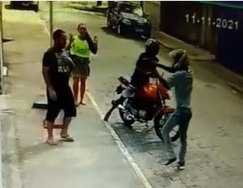 A polícia chegou aos suspeitos a partir do número da placa da moto. Foi possível observar a numeração do veículo poro meio das câmeras de segurança da via.