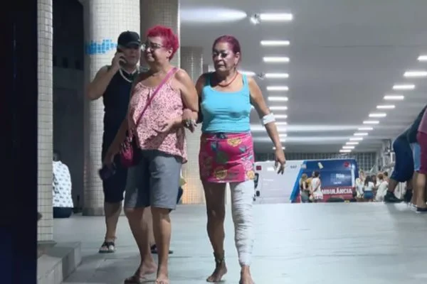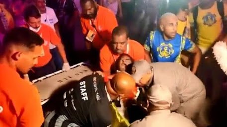 Alba Regina Gomes, de 72 anos, que ex-chacrete, passou mal durante o desfile e estava em uma cadeira de rodas sendo socorrido pelo Corpo de Bombeiros, quando o carro alegórico a “atropelou”. Um vídeo, que circula nas redes sociais, mostra o momento em que ela é colocada na maca reclamando de muitas dores.